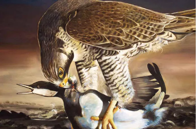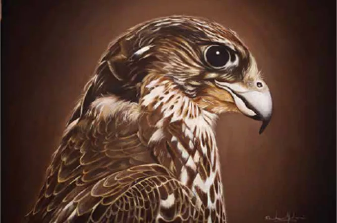Among the many creations of God, I am fascinated by Falcons. There is something extraordinary about them. I love the depth in their eyes, their sharp focus, and their strength to soar to amazing heights and their grace as they glide… In fact, Falcons are part of Emirati culture from which I hail. They are our National bird soaring high. Their very existence seems to bring life to my paintings.”